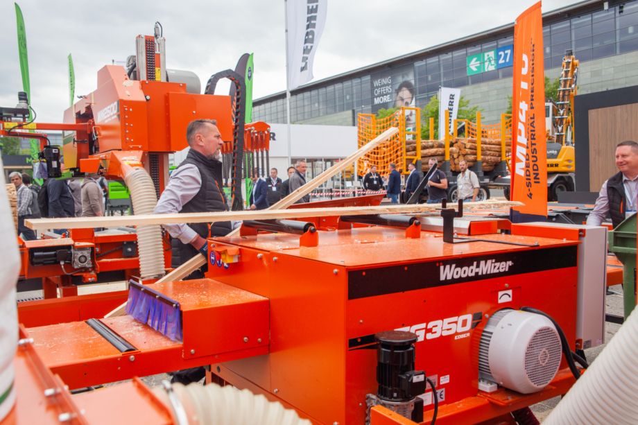 Junto a la línea WM5500, Wood-Mizer también presenta el aserradero WM2500 emparejado con la canteadora/sierra multiple EG350. El WM2500, un éxito en América del Norte, ya está disponible para los clientes europeos que buscan capacidad industrial robusta a un precio competitivo. Este aserradero industrial de nivel de entrada puede cortar troncos con un diámetro máximo de 105 cm (ancho de corte de 86 cm). La EG350, que combina las funciones de una canteadora y una sierra multiple en una sola máquina (capacidad de corte de 550 mm de ancho y 100 mm de grosor), agiliza las operaciones, permitiendo a los usuarios de aserraderos alcanzar una mayor producción y rentabilidad.